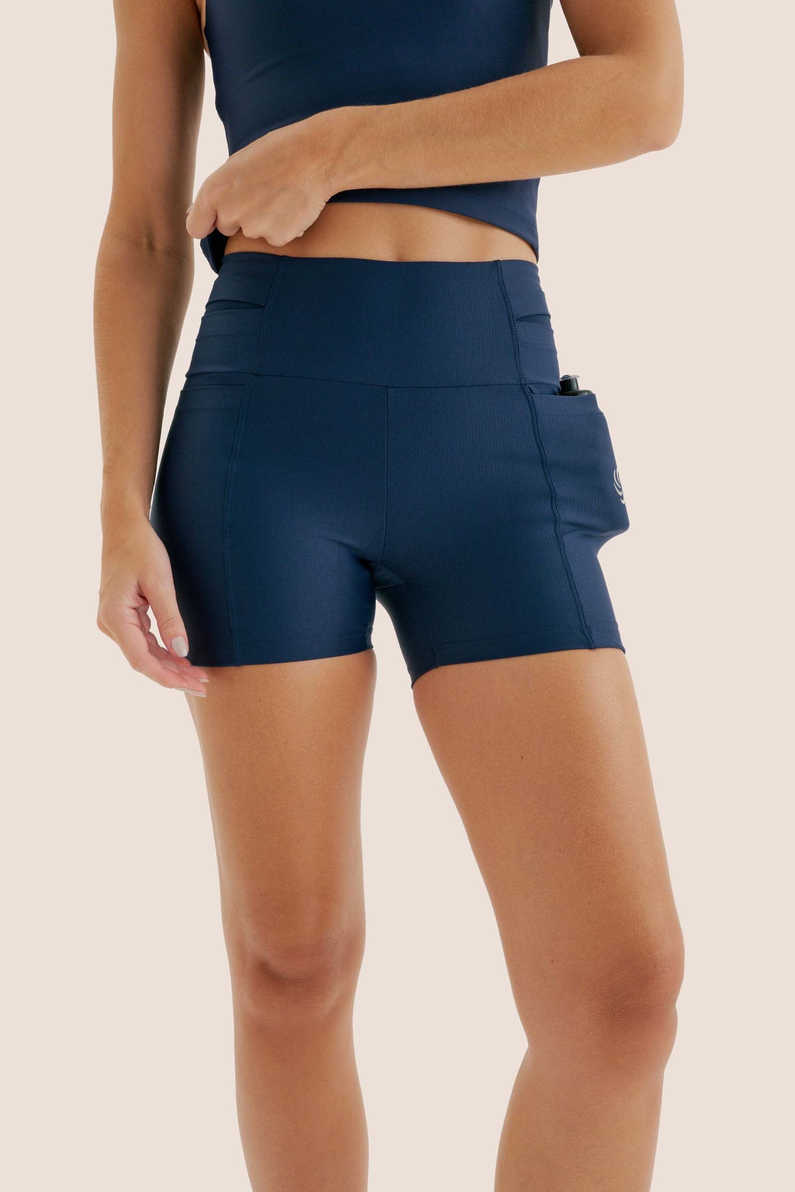 de compressão com bolsos marinho